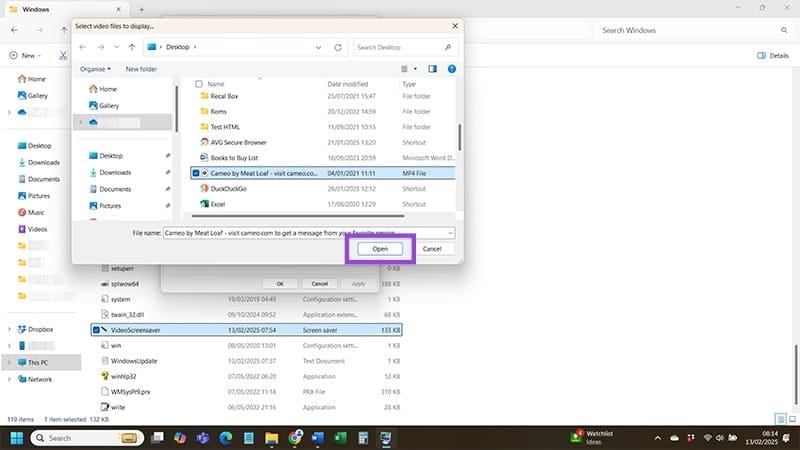 Krok 10: Přejděte přes své složky, abyste našli video, které chcete použít jako spořič obrazovky. Jakmile ho najdete, buď na něj dvojklikněte, nebo na něj klikněte jednou a stiskněte tlačítko "Otevřít".