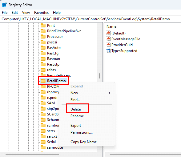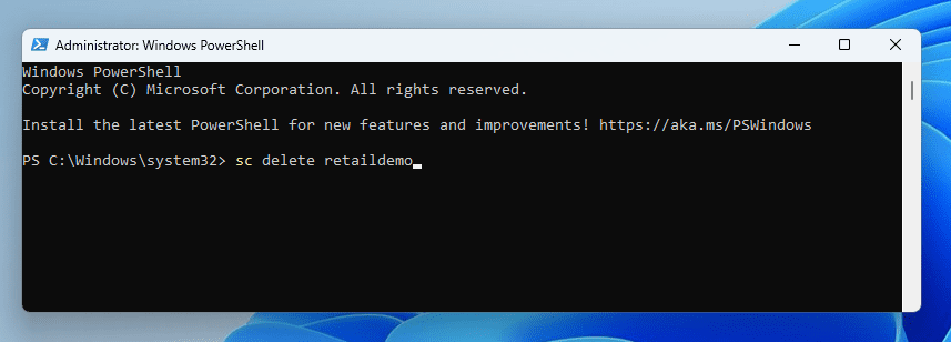 Ez a parancs törli a Retail Demo szolgáltatást a Windows 11-ből.