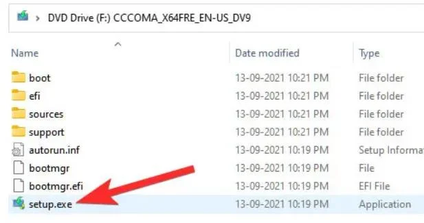 Zdaj preprosto zaženite datoteko setup.exe tako, da jo dvokliknete, da znova zaženete namestitev sistema Windows 11.