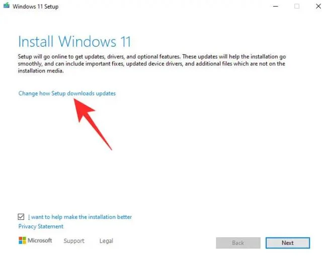 Nato kliknite Spremeni način nalaganja namestitvenih posodobitev, kot je prikazano spodaj
